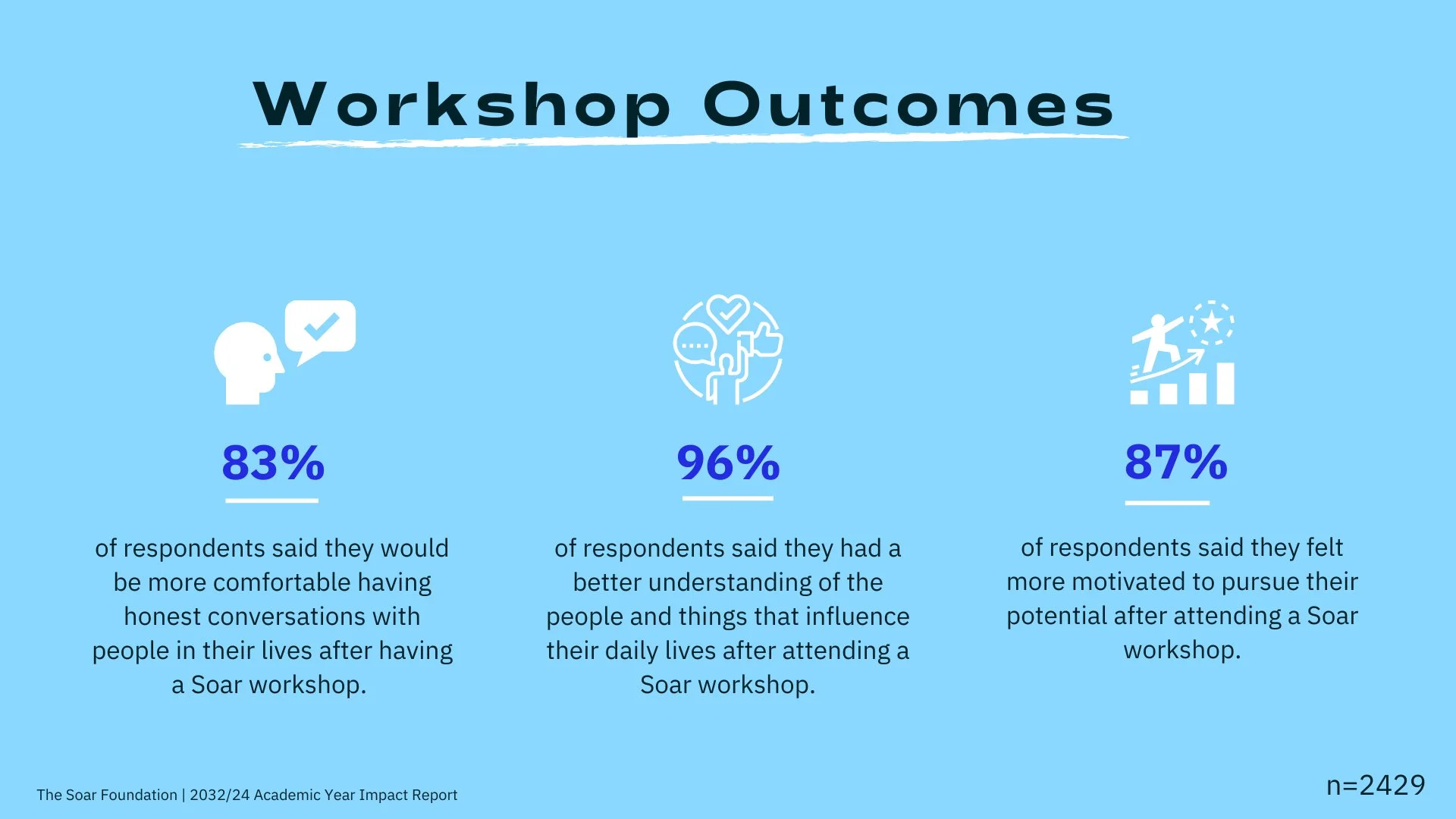 As a result of Soar workshops, teenagers and TY's have increased self-awareness, confidence, and ability to cope and deal with challenges.